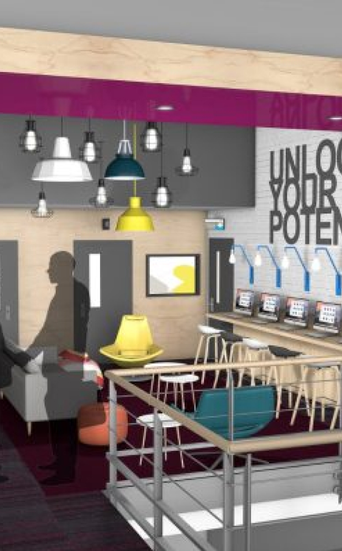 We’ve used our design expertise to turn the Atrium into a vibrant and inviting space that feels firmly focused on students.