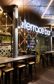 At Warwick’s Terrace Bar, we restored the wooden dancefloor, polished the copper ceiling, and revitalised the existing bar to create a completely refreshed space.